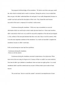Next attempt was more exciting. I was an observer, so I watched from the sidelines interesting interactions between team. To my mind this time team was more organized and result-oriented. In the beginning leader asked each team member read out aloud their goals and suggested planning every step according to aims to achieve better results. They spend about 30 minutes communicating and preparing. Team made a strategy, what was really important and helpful, because strategy is “a consciously intended course of action or guideline to deal with situation” (Gronfeldt, 75). So group was aware of the future steps.