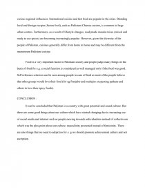 Food is a very important factor in Pakistani society and people judge many things on the basis of food for e.g. a social function is considered as well managed only if the food was good. Self reference criterion can be seen among people in case of food as most of the people believe that other groups would love their food (for eg Punjabis and muhajirs excpecting pathans and others to love their spicy foods).